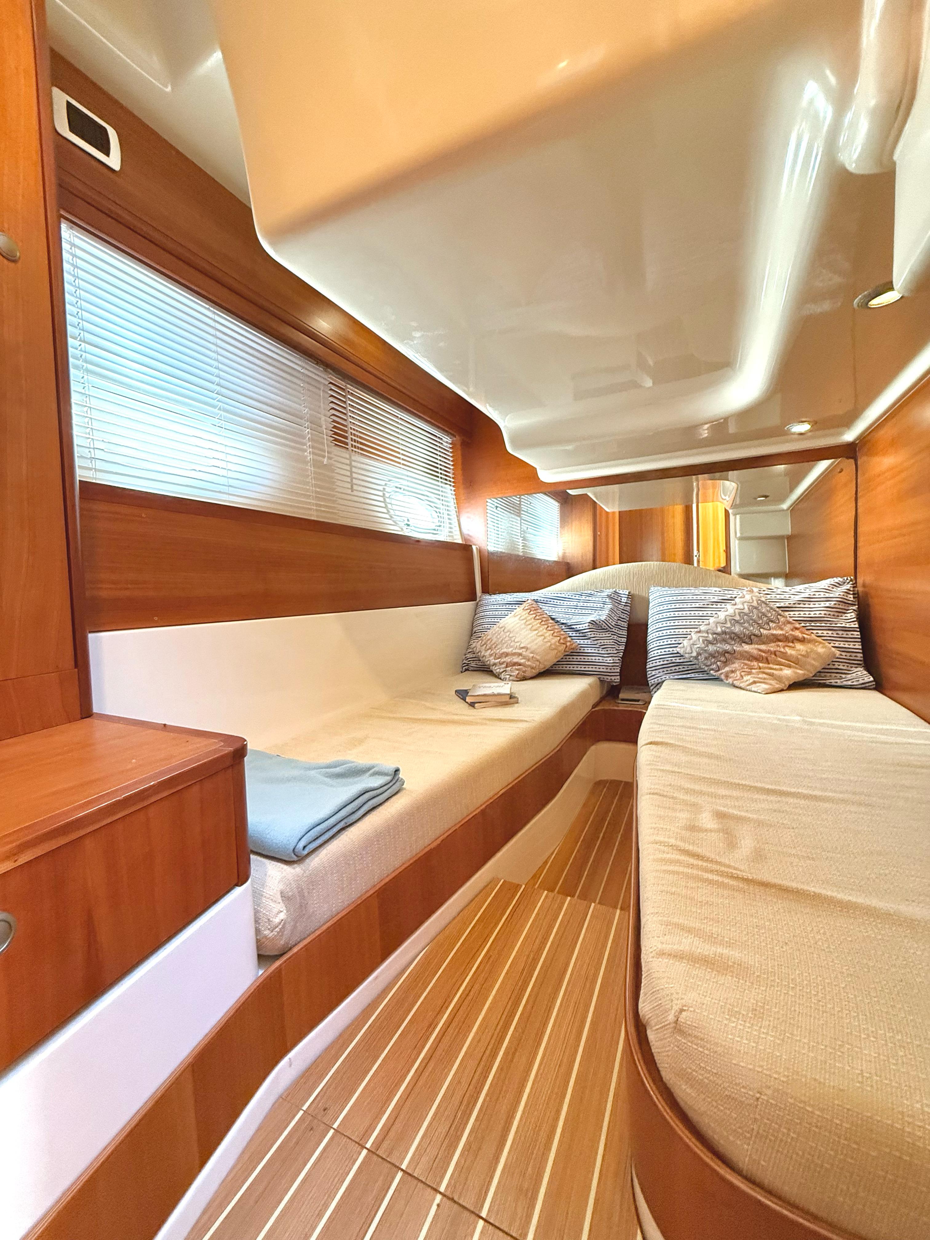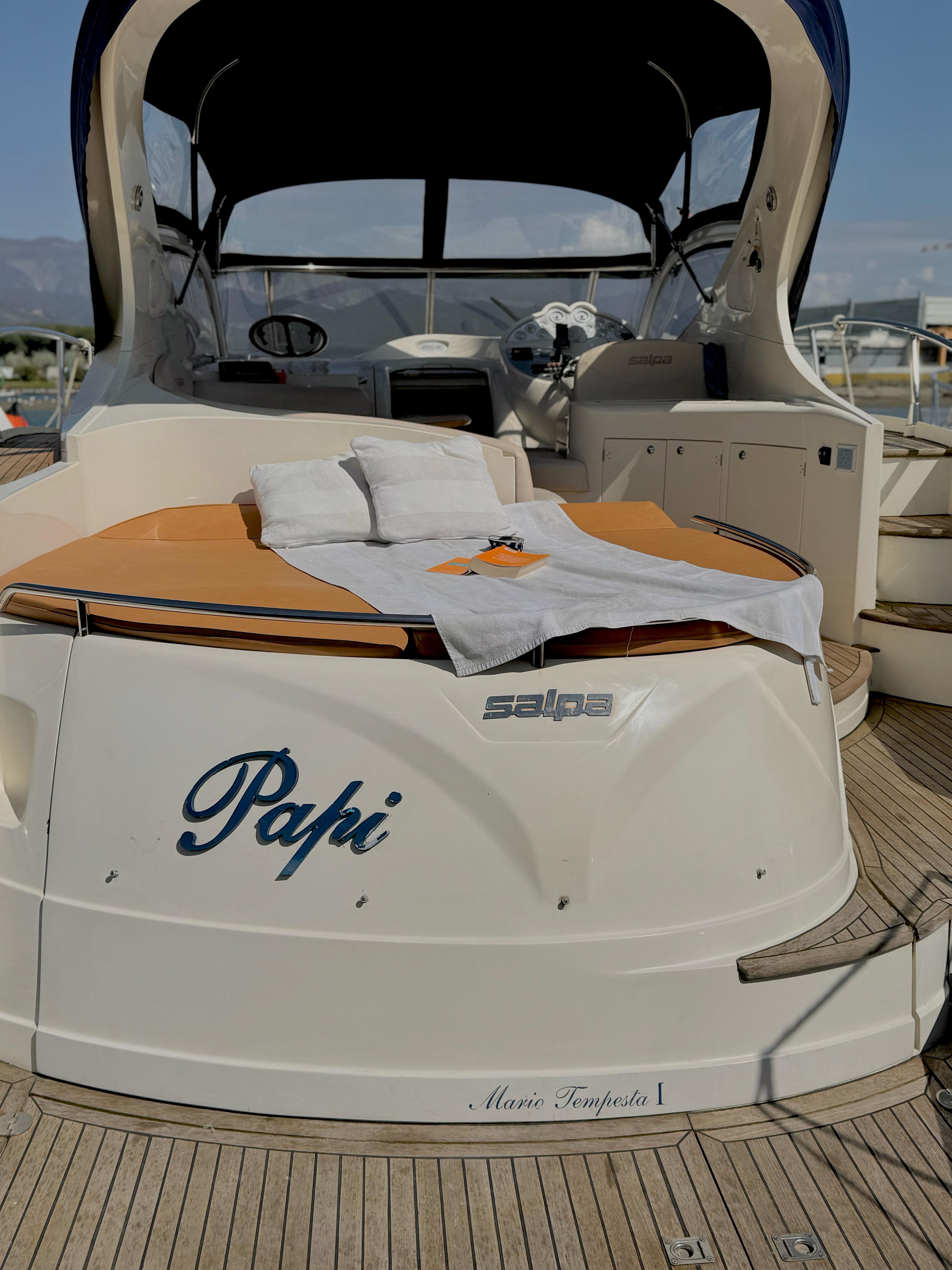 Se desiderate una barca a motore che vi offra comfort ed eleganza, allora Salpa Laver 38.5 è la scelta perfetta per voi. E' una barca dotata di ogni confort, dotata di 2 potenti motori, con una tenuta di mare eccellente. Comoda cuscineria a prua ed a poppa, per godersi una giornata in relax ed eleganza, 3 cabine con bagno, e cucina.